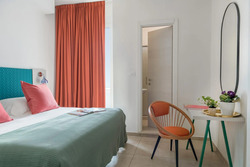 l’hotel molto elegante si sviluppa su 5 piani tutti a tema colori dell’arcobaleno. La reception, aperta h24, è al piano terra con un grazioso bar e l’elegante salotto dell’hotel. Il bar serve anche la grande piscina riscaldata esterna fornita di lettini solarium e di una vasca idromassaggio Jacuzzi interrata da 6 posti. Le camere arredate in stile moderno offrono tutte balcone, la maggior parte vista mare, bagni ristrutturati con box doccia, aria condizionata, frigo bar, TV, cassaforte e wi-fi. La sala colazioni si trova al primo piano e si estende su due aree una interna con aria condizionata ed una esterna sulla grande terrazza vista mare.