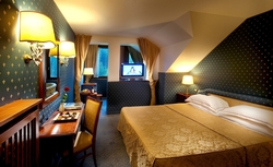 L’hotel dispone di 109 camere, spaziose, con moquette ed elegant mente arredate. Diverse le tipologie: SuperiorExecutive con possbilità di terzo letto, Deluxe con ampie metrature e Junior Suite: camere con divano e vasca idromassaggio. Camere superior Camere executive Junior suite. Ideale per una o due persone, le camere dispongono di letto matrimoniale o singolo. Tutte dotate di cassaforte, TV LCD con canali Sky, telefono, frigobar *. Il bagno privato è dotato di vasca o doccia, asciugacapelli e set di prodotti da bagno. * Riempimento su richiesta e a pagamento.