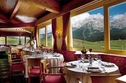 Il ristorante che domina la piana di Campo Carlo Magno propone un servizio al tavolo arricchito da un buffet di sfiziosità, crudità e dolci, con i piatti della tradizione locale e internazionale.